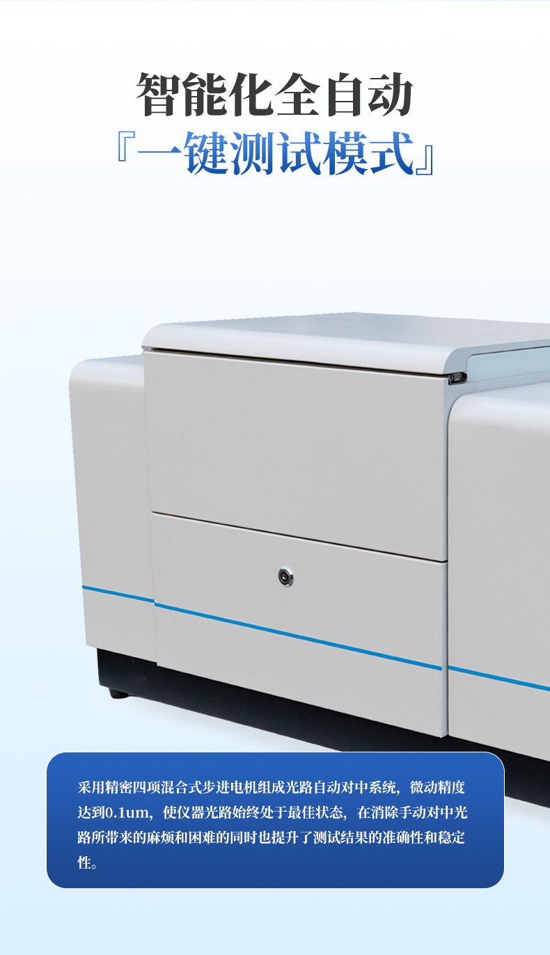 | 智能操作模式 | 具有智能化全自動操作模式,實現(xiàn)一鍵測試,即只要根據(jù)提示加入樣品,點擊“自動測試”,所有操作過程包括進水、分散、循環(huán)、測試、清洗、數(shù)據(jù)記錄、數(shù)據(jù)分析、保存及打印等全部自動完成,不僅減輕了測試人員的工作量,而且消除了人為因素的干擾誤差,進一步提高了測試的精度和結(jié)果的真實性。 |