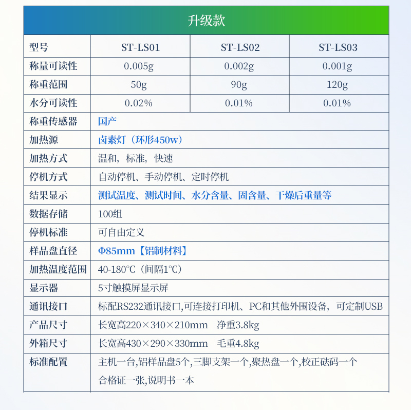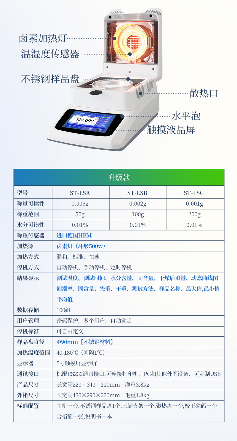 水分可讀精度 Moisturereadability | 0.02% | 0.02% | 0.01% | 0.01% |
